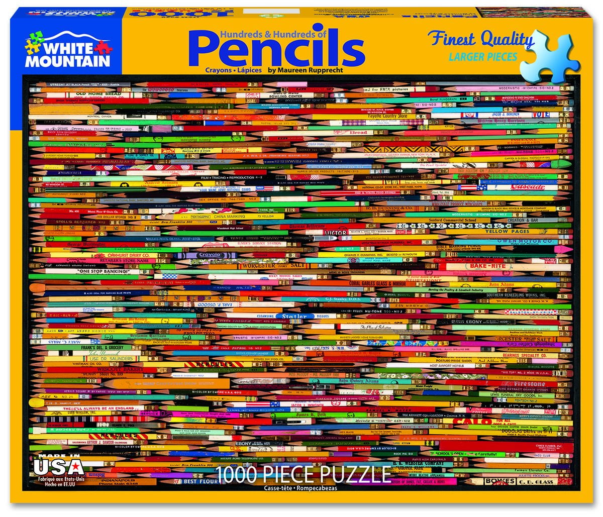 A most challenging jigsaw puzzle for the puzzler fanatic to enjoy. This incredible collection of advertising pencils was created by artist Maureen Rupprecht, who literally glued hundreds of pencils into a frame. Talk about a challenge! This jigsaw puzzle is a great test for any skilled puzzler! Artist: Maureen Rupprecht 1000 piece jigsaw puzzle: Finished size 24″ x 30″